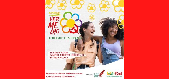 Principal atração da série de comemorações pelo centenário do PCdoB, o Festival Vermelho já está com sua programação completa, recheada de grandes atrações artísticas, culturais e políticas. O evento — que acontece nos dias 25 e 26 de março, no Caminho Niemeyer, em Niterói (RJ), onde o partido nasceu em 1922 — é uma iniciativa única das esquerdas no país. Totalmente gratuito, o Festival terá mais de 30 horas de programação e começa às 15h da sexta-feira (25). A realização é do PCdoB e Fundação Maurício Grabois.